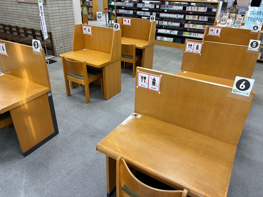 サイレントルームでは全席指定の学習スペースが利用できます。予約制のため、利用には図書館カードとパスワードが必要です。事前にwebまたは館内OPACから予約するか、当日、図書館の予約端末から予約してご利用ください。